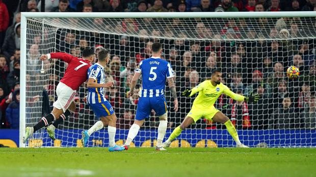 And only the brilliant David de Gea kept out Jakub Moder by twice saving from the 22-year-old, the second effort a spectacular dive as Moder leapt highest to meet Leandro Trossard’s inch-perfect cross.